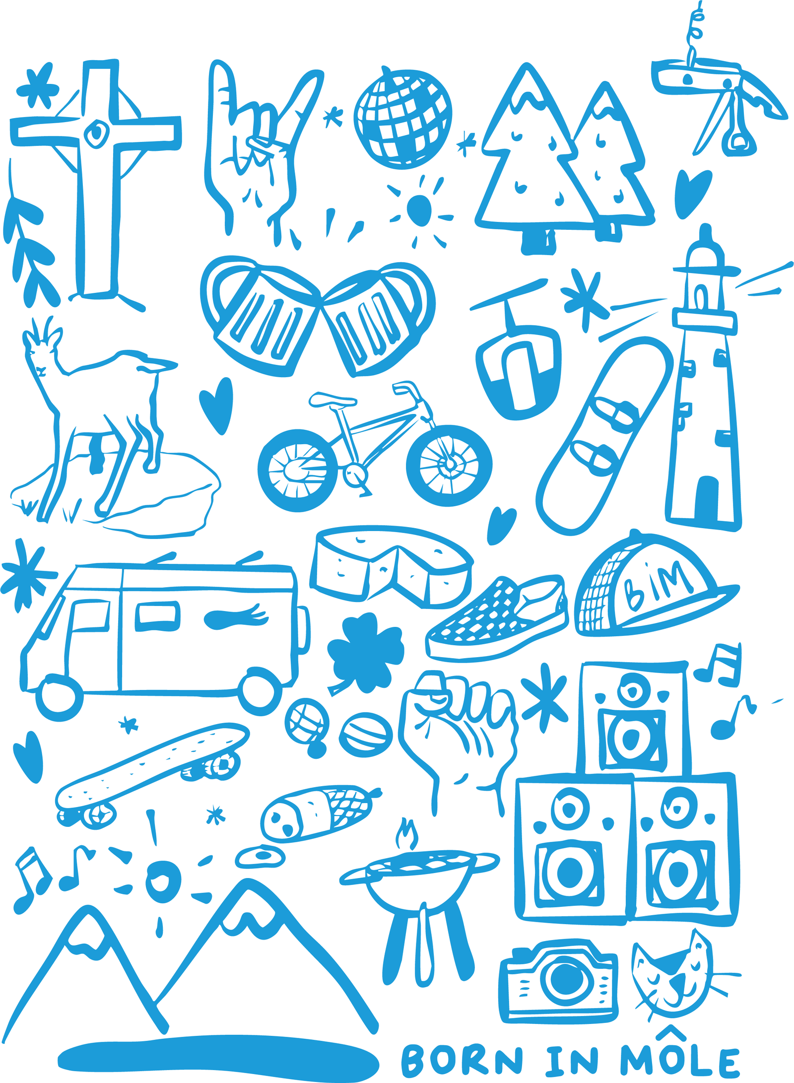 Toujours dans cette recherche d'aller plus loin, j'ai donc naturellement commencé à imaginer des motifs pour le textile, puis pour le matériel, et petit à petit pour illustrer des brochures et mettre en avant des produits ou des évènements.